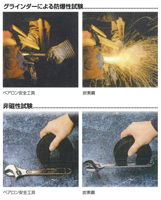 防爆性、非磁性、耐蝕性、高強度に優れたベアロン安全工具