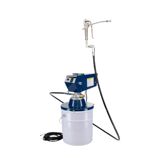 市販のグリースペール缶(16kg)に直接取り付けてご使用いただける電動式グリースルブリケーター。
